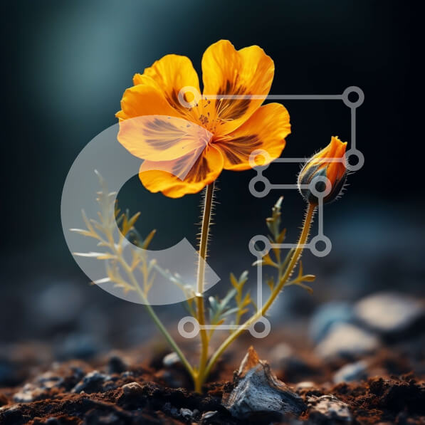 Intra Συλλεκτικό Ξύλινο Παζλ Plywood 4mm – Όμορφη εικόνα ενός ενιαίου πορτοκαλί λουλουδιού σε ένα σκοτεινό βραχώδες έδαφος Σε Ξύλινο Κουτί – Διαστάσεις: 10×10 cm – 25 κομμάτια