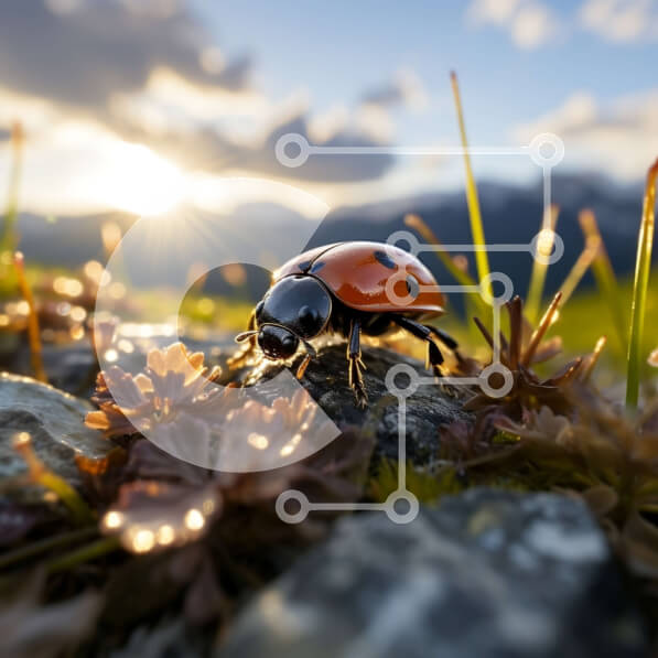 Intra Συλλεκτικό Ξύλινο Παζλ Plywood 4mm – Όμορφη εικόνα της πασχαλίτσας στο γρασίδι στο λιβάδι με το ηλιοβασίλεμα του βουνού Σε Ξύλινο Κουτί – Διαστάσεις: 10×10 cm – 25 κομμάτια