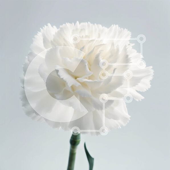 Intra Συλλεκτικό Ξύλινο Παζλ Plywood 4mm – Όμορφη εικόνα του λευκού λουλουδιού γαρύφαλλου σε ένα λεπτό γκρι φόντο Σε Ξύλινο Κουτί – Διαστάσεις: 10×10 cm – 25 κομμάτια
