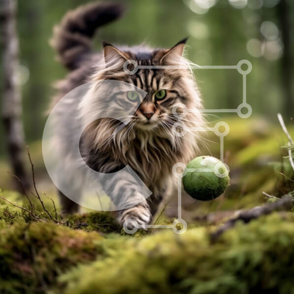 Intra Συλλεκτικό Ξύλινο Παζλ Plywood 4mm – Όμορφη εικόνα μιας μακρυμάλλης γάτας που περπατά σε ένα δάσος Σε Ξύλινο Κουτί – Διαστάσεις: 10×10 cm – 25 κομμάτια