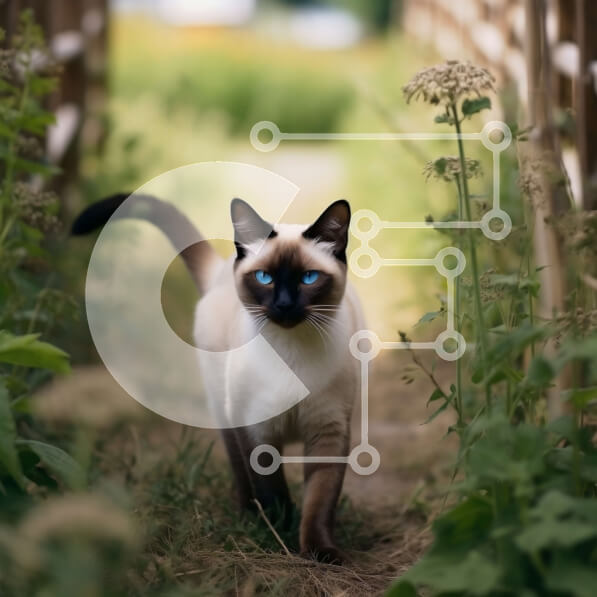 Intra Συλλεκτικό Ξύλινο Παζλ Plywood 4mm – Όμορφη εικόνα μιας σιαμέζας γάτας που περπατά μέσα από έναν καταπράσινο κήπο Σε Ξύλινο Κουτί – Διαστάσεις: 10×10 cm – 25 κομμάτια
