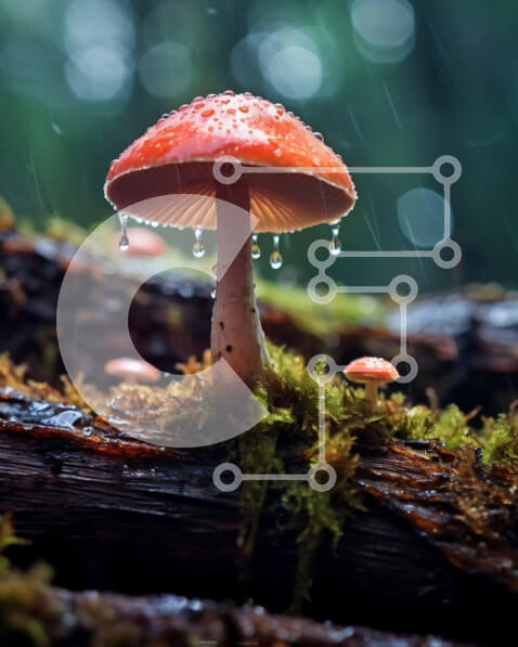 Intra Συλλεκτικό Ξύλινο Παζλ Plywood 4mm – Όμορφη εικόνα κόκκινου μανιταριού με σταγονίδια νερού σε ένα δάσος Σε Ξύλινο Κουτί – Διαστάσεις: 10×10 cm – 25 κομμάτια