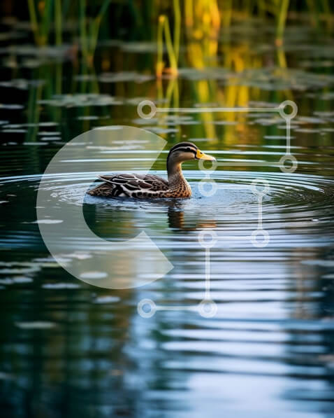 Intra Συλλεκτικό Ξύλινο Παζλ Plywood 4mm – Όμορφη εικόνα μιας πάπιας που κολυμπά σε μια καταπράσινη λίμνη Σε Ξύλινο Κουτί – Διαστάσεις: 10×10 cm – 25 κομμάτια