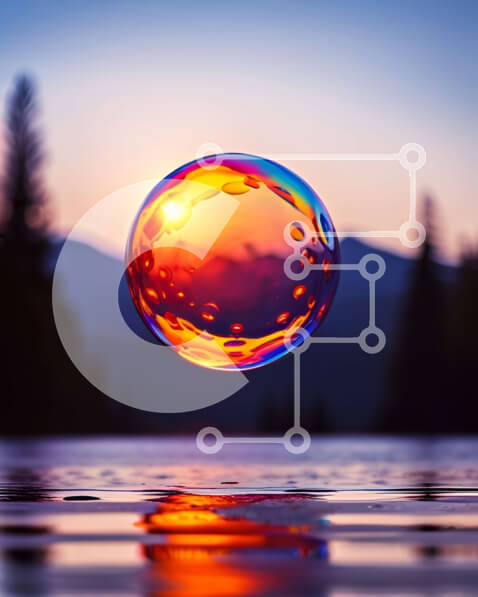 Intra Συλλεκτικό Ξύλινο Παζλ Plywood 4mm – Όμορφη εικόνα της πολύχρωμης φυσαλίδας στο νερό στο ηλιοβασίλεμα με τα βουνά Σε Ξύλινο Κουτί – Διαστάσεις: 10×10 cm – 25 κομμάτια