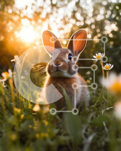 Intra Συλλεκτικό Ξύλινο Παζλ Plywood 4mm – Όμορφη εικόνα ενός κουνελιού σε ένα χωράφι με μαργαρίτες στο ηλιοβασίλεμα Σε Ξύλινο Κουτί – Διαστάσεις: 10×10 cm – 25 κομμάτια