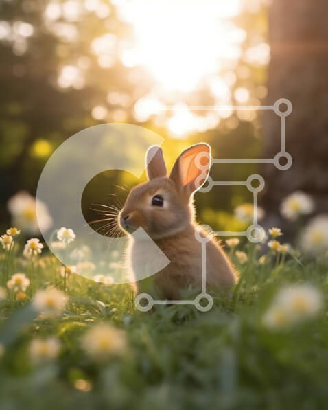Intra Συλλεκτικό Ξύλινο Παζλ Plywood 4mm – Όμορφη εικόνα ενός κουνελιού σε ένα χωράφι με μαργαρίτες στο ηλιοβασίλεμα Σε Ξύλινο Κουτί – Διαστάσεις: 10×10 cm – 25 κομμάτια
