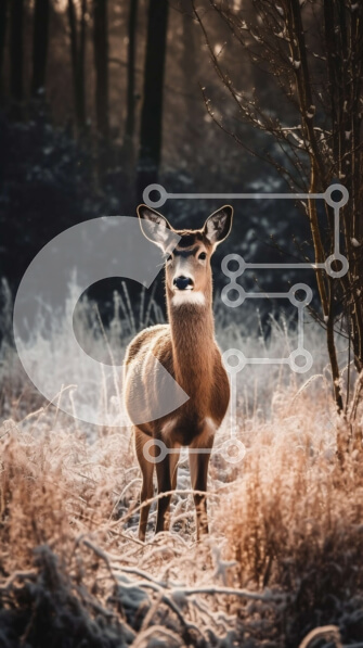 Intra Συλλεκτικό Ξύλινο Παζλ Plywood 4mm – Όμορφη εικόνα ενός ελαφιού σε ένα παγωμένο χειμερινό δάσος Σε Ξύλινο Κουτί – Διαστάσεις: 10×10 cm – 25 κομμάτια