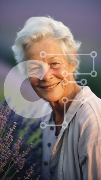 Intra Συλλεκτικό Ξύλινο Παζλ Plywood 4mm – Όμορφη εικόνα της ηλικιωμένης γυναίκας στο πεδίο της λεβάντας Σε Ξύλινο Κουτί – Διαστάσεις: 10×10 cm – 25 κομμάτια