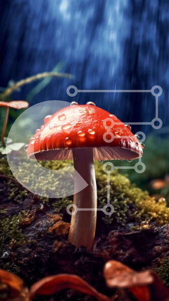 Intra Συλλεκτικό Ξύλινο Παζλ Plywood 4mm – Όμορφη εικόνα του κόκκινου μανιταριού που αναπτύσσεται στο υγρό δάσος Σε Ξύλινο Κουτί – Διαστάσεις: 10×10 cm – 25 κομμάτια