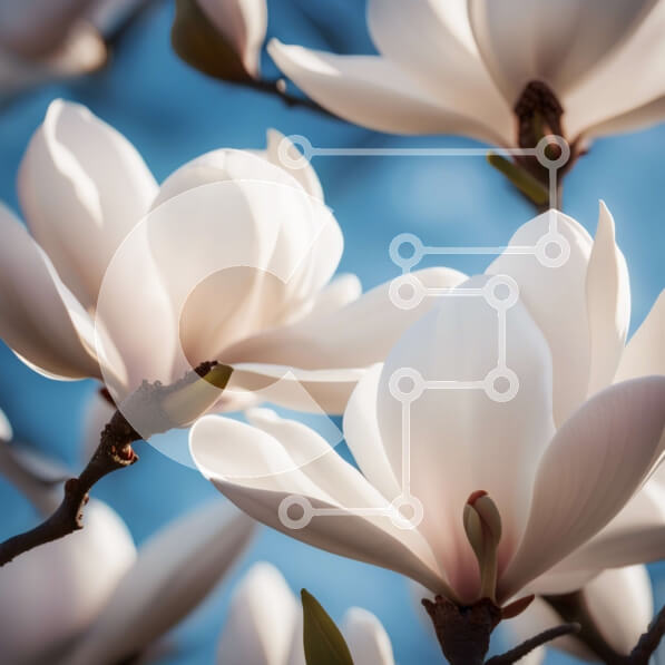 Intra Συλλεκτικό Ξύλινο Παζλ Plywood 4mm – Όμορφη κινηματογράφηση σε πρώτο πλάνο ενός λευκού λουλουδιού Magnolia σε πλήρη άνθιση Σε Ξύλινο Κουτί – Διαστάσεις: 10×10 cm – 25 κομμάτια
