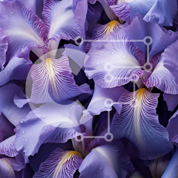 Intra Συλλεκτικό Ξύλινο Παζλ Plywood 4mm – Όμορφη κινηματογράφηση σε πρώτο πλάνο από μωβ λουλούδια ίριδας με σταγόνες βροχής Σε Ξύλινο Κουτί – Διαστάσεις: 10×10 cm – 25 κομμάτια