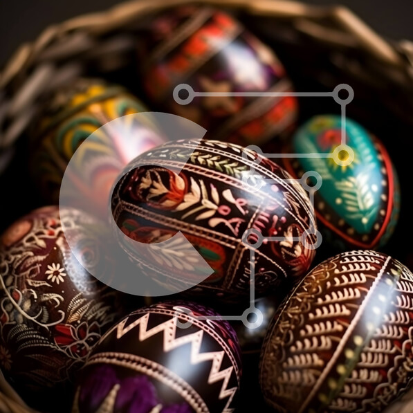 Intra Συλλεκτικό Ξύλινο Παζλ Plywood 4mm – Όμορφη κινηματογράφηση σε πρώτο πλάνο διακοσμημένων πασχαλινών αυγών σε υφαντό καλάθι Σε Ξύλινο Κουτί – Διαστάσεις: 10×10 cm – 25 κομμάτια