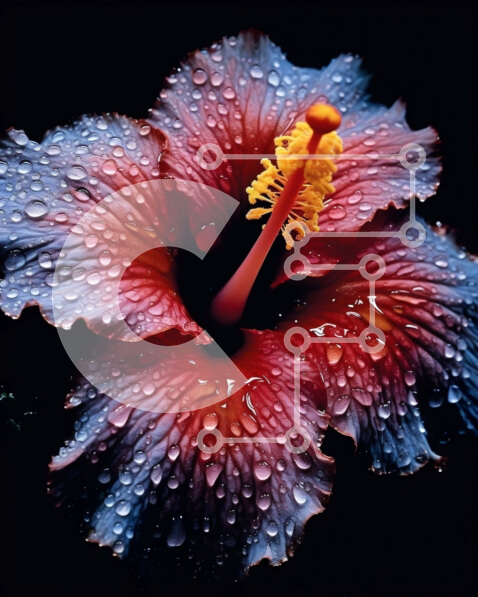 Intra Συλλεκτικό Ξύλινο Παζλ Plywood 4mm – Όμορφη κοντινή εικόνα του λουλουδιού ιβίσκου με σταγονίδια νερού σε πέταλα Σε Ξύλινο Κουτί – Διαστάσεις: 10×10 cm – 25 κομμάτια