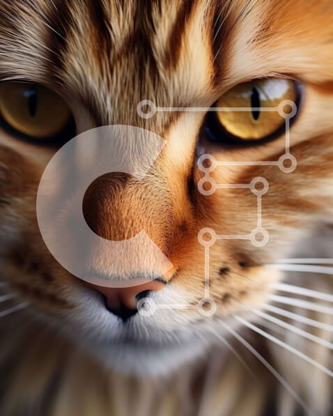 Intra Συλλεκτικό Ξύλινο Παζλ Plywood 4mm – Όμορφη κοντινή φωτογραφία μιας γάτας με αφράτη γούνα και έντονα κίτρινα μάτια Σε Ξύλινο Κουτί – Διαστάσεις: 10×10 cm – 25 κομμάτια