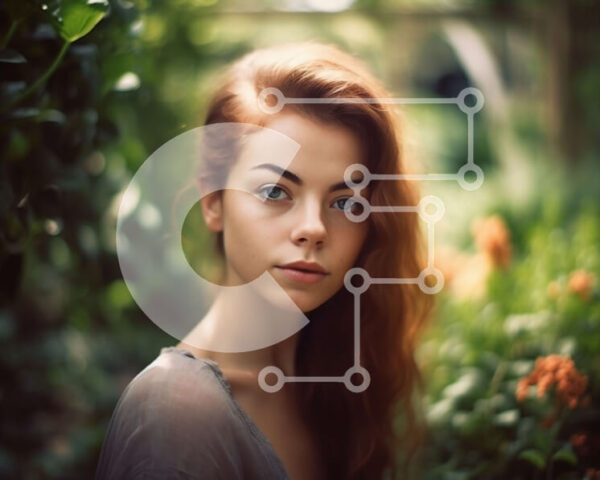 Intra Συλλεκτικό Ξύλινο Παζλ Plywood 4mm – Όμορφη νεαρή γυναίκα με κόκκινα μαλλιά σε έναν κήπο με λουλούδια Σε Ξύλινο Κουτί – Διαστάσεις: 10×10 cm – 25 κομμάτια