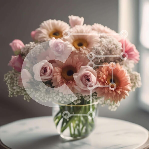 Intra Συλλεκτικό Ξύλινο Παζλ Plywood 4mm – Όμορφη ροζ και λευκή ανθοσύνθεση σε διάφανο βάζο Σε Ξύλινο Κουτί – Διαστάσεις: 10×10 cm – 25 κομμάτια