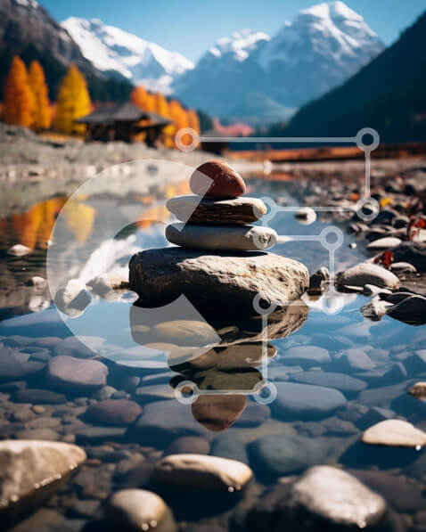 Intra Συλλεκτικό Ξύλινο Παζλ Plywood 4mm – Όμορφη στοίβα βράχων στο νερό με μαγευτική θέα στο βουνό Σε Ξύλινο Κουτί – Διαστάσεις: 10×10 cm – 25 κομμάτια