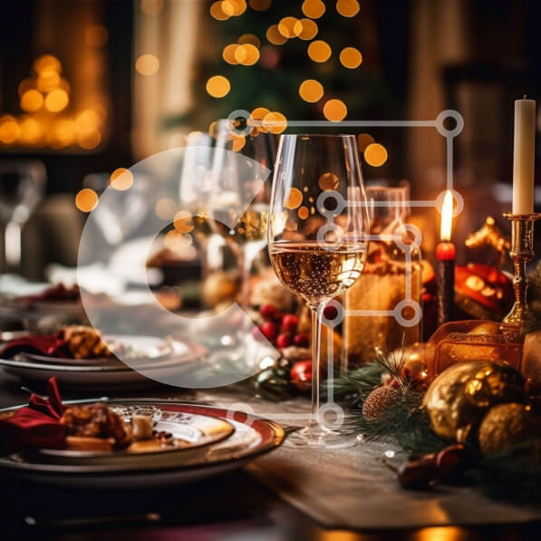 Intra Συλλεκτικό Ξύλινο Παζλ Plywood 4mm – Όμορφο γιορτινό τραπέζι με χριστουγεννιάτικα στολίδια και αναμμένο δέντρο στο φόντο Σε Ξύλινο Κουτί – Διαστάσεις: 10×10 cm – 25 κομμάτια