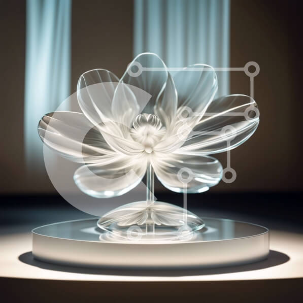 Intra Συλλεκτικό Ξύλινο Παζλ Plywood 4mm – Όμορφο γυάλινο γλυπτό λουλουδιών λωτού σε λευκό βάθρο Σε Ξύλινο Κουτί – Διαστάσεις: 10×10 cm – 25 κομμάτια
