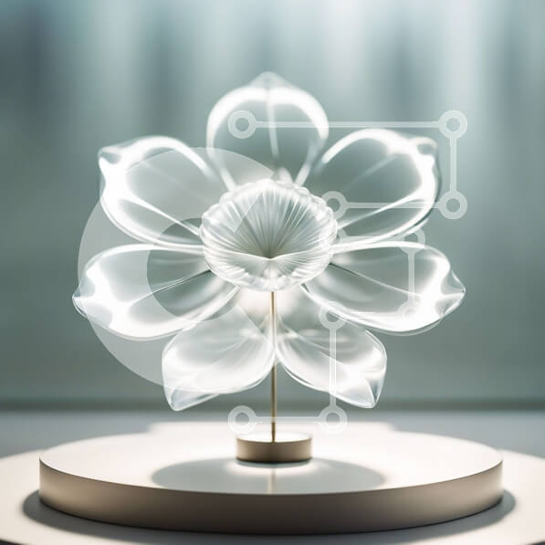 Intra Συλλεκτικό Ξύλινο Παζλ Plywood 4mm – Όμορφο διαυγές γυάλινο λουλούδι σε λευκό βάθρο Σε Ξύλινο Κουτί – Διαστάσεις: 10×10 cm – 25 κομμάτια