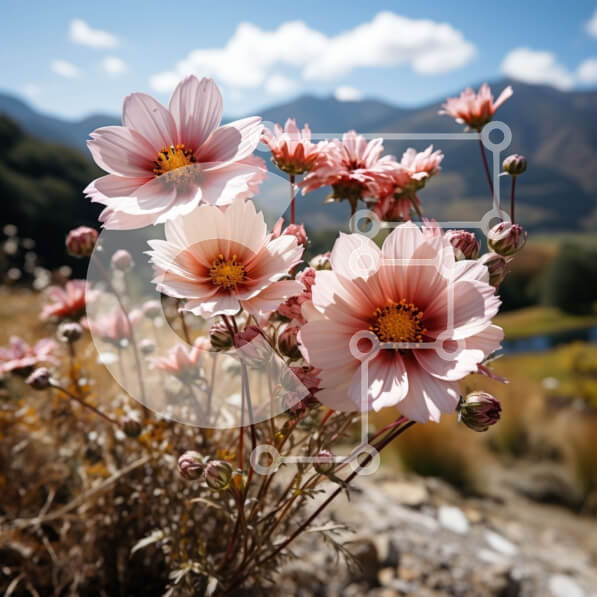 Intra Συλλεκτικό Ξύλινο Παζλ Plywood 4mm – Όμορφο τοπίο με ροζ λουλούδια με μαγευτικά βουνά Σε Ξύλινο Κουτί – Διαστάσεις: 10×10 cm – 25 κομμάτια