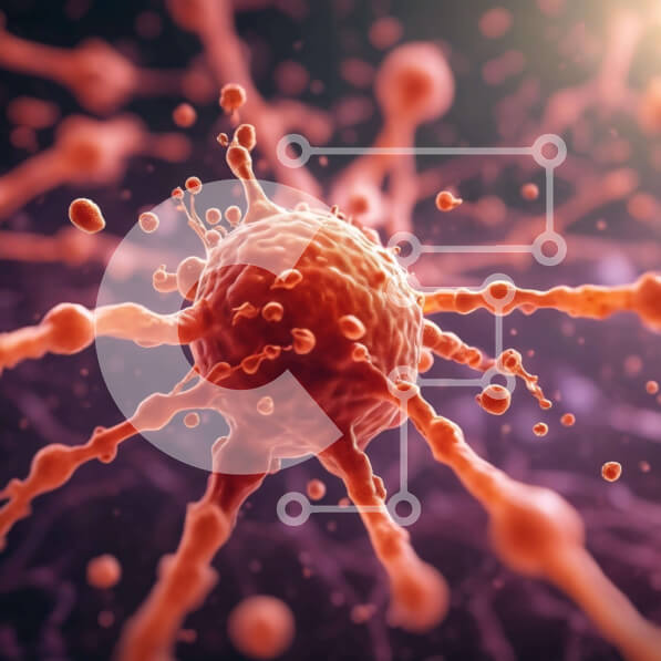 Intra Συλλεκτικό Ξύλινο Παζλ Plywood 4mm – 3D απεικόνιση του καρκινικού κυττάρου με πορτοκαλί φυσαλίδες Σε Ξύλινο Κουτί – Διαστάσεις Puzzle: 10×10 cm – 25 κομμάτια