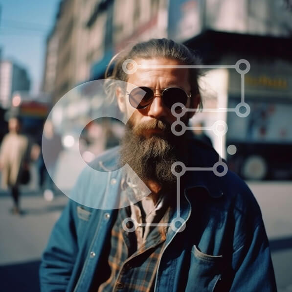 Intra Συλλεκτικό Ξύλινο Παζλ Plywood 4mm – Cool and Hip Man με μακριά γενειάδα και γυαλιά ηλίου στην City Street Σε Ξύλινο Κουτί – Διαστάσεις Puzzle: 10×10 cm – 25 κομμάτια