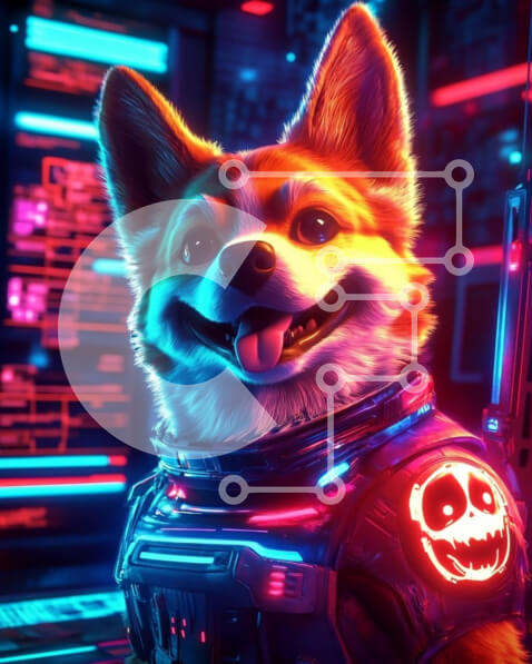 Intra Συλλεκτικό Ξύλινο Παζλ Plywood 4mm – Corgi σε διαστημική στολή με νέον φόντο Σε Ξύλινο Κουτί – Διαστάσεις: 10×10 cm – 25 κομμάτια