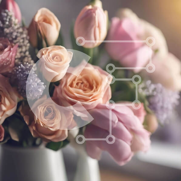 Intra Συλλεκτικό Ξύλινο Παζλ Plywood 4mm – Floral σύνθεση με ροζ και μωβ τριαντάφυλλα σε λευκό βάζο Σε Ξύλινο Κουτί – Διαστάσεις: 10×10 cm – 25 κομμάτια