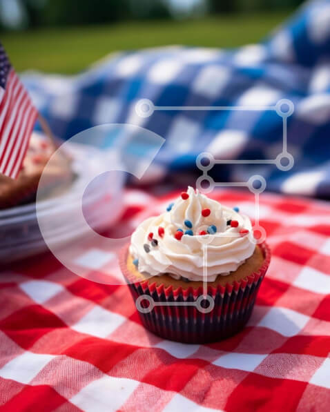 Intra Συλλεκτικό Ξύλινο Παζλ Plywood 4mm – Holiday Cupcake σε τραπεζομάντιλο αμερικανικής σημαίας Σε Ξύλινο Κουτί – Διαστάσεις: 10×10 cm – 25 κομμάτια