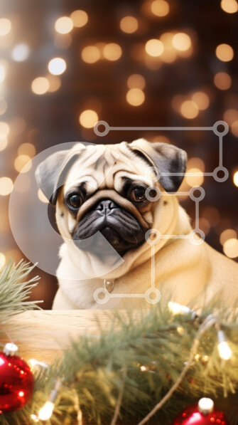 Intra Συλλεκτικό Ξύλινο Παζλ Plywood 4mm – Pug Dog σε ένα εορταστικό χριστουγεννιάτικο σκηνικό Σε Ξύλινο Κουτί – Διαστάσεις: 10×10 cm – 25 κομμάτια