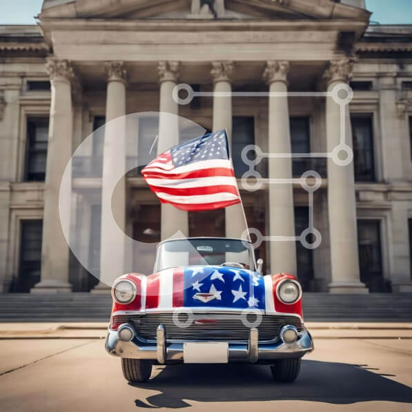 Intra Συλλεκτικό Ξύλινο Παζλ Plywood 4mm – Vintage αμερικανικό αυτοκίνητο με πατριωτική διακόσμηση Σε Ξύλινο Κουτί – Διαστάσεις Puzzle: 10×10 cm – 25 κομμάτια