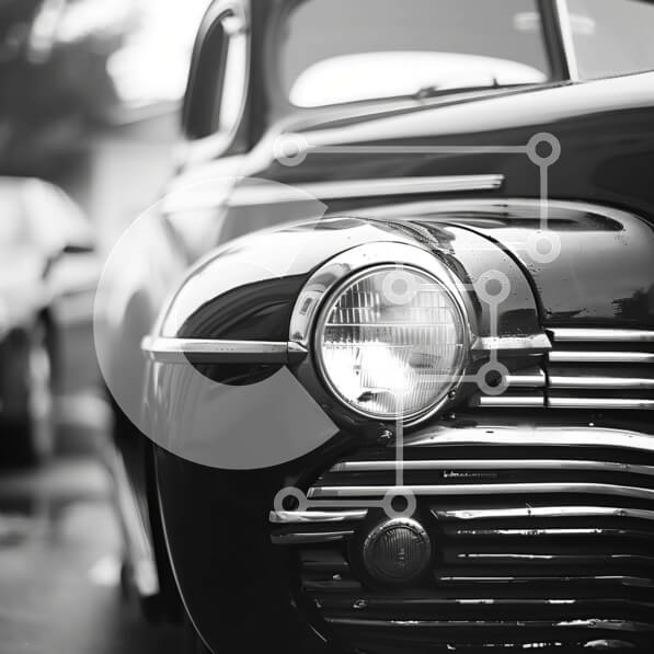 Intra Συλλεκτικό Ξύλινο Παζλ Plywood 4mm – Vintage αυτοκίνητο παρκαρισμένο δίπλα σε άλλα αυτοκίνητα Σε Ξύλινο Κουτί – Διαστάσεις Puzzle: 10×10 cm – 25 κομμάτια