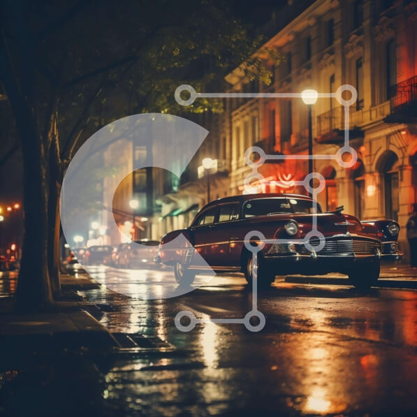Intra Συλλεκτικό Ξύλινο Παζλ Plywood 4mm – Vintage αυτοκίνητο παρκαρισμένο στην Wet City Street Σε Ξύλινο Κουτί – Διαστάσεις Puzzle: 10×10 cm – 25 κομμάτια