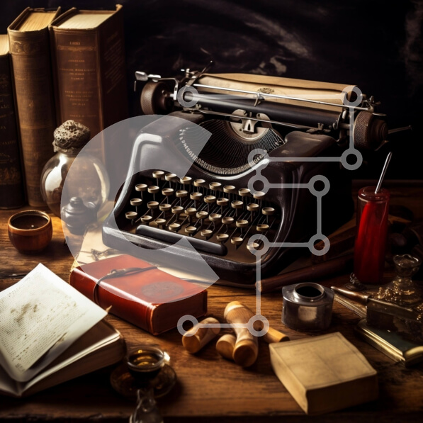 Intra Συλλεκτικό Ξύλινο Παζλ Plywood 4mm – Vintage γραφομηχανή και βιβλία σε ξύλινο τραπέζι Σε Ξύλινο Κουτί – Διαστάσεις: 10×10 cm – 25 κομμάτια
