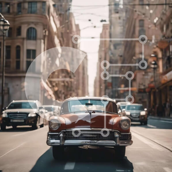 Intra Συλλεκτικό Ξύλινο Παζλ Plywood 4mm – Vintage κόκκινο αυτοκίνητο στην καρδιά της πόλης Σε Ξύλινο Κουτί – Διαστάσεις Puzzle: 10×10 cm – 25 κομμάτια