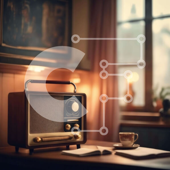 Intra Συλλεκτικό Ξύλινο Παζλ Plywood 4mm – Vintage ραδιόφωνο και φλιτζάνια καφέ σε ξύλινο τραπέζι Σε Ξύλινο Κουτί – Διαστάσεις Puzzle: 10×10 cm – 25 κομμάτια