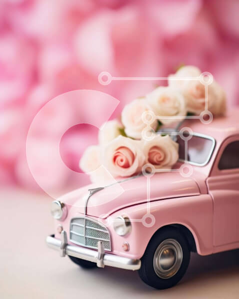 Intra Συλλεκτικό Ξύλινο Παζλ Plywood 4mm – Vintage ροζ παιχνίδι αυτοκίνητο με τριαντάφυλλα Σε Ξύλινο Κουτί – Διαστάσεις Puzzle: 10×10 cm – 25 κομμάτια