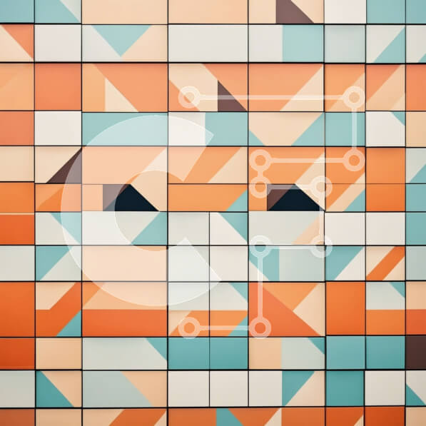 Intra Συλλεκτικό Ξύλινο Παζλ Plywood 4mm – Vintage τοίχος από τούβλα με πορτοκαλί, μπλε και λευκά τρίγωνα Σε Ξύλινο Κουτί – Διαστάσεις Puzzle: 10×10 cm – 25 κομμάτια