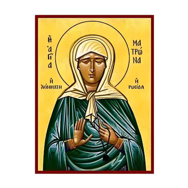 Availability: 2000 σε απόθεμα Κωδικός προϊόντος: Βασικά Χαρακτηριστικά: - Σχέδιο: Κλασική βυζαντινή εικονογραφία με ζωηρό κόκκινο περίγραμμα - Υλικό: Ξύλο Μασίφ Φλαμουρία υψηλής αντοχής με προστατευτικό βερνίκι για ποιότητα που διαρκεί - Προέλευση: Χειροποίητο στην Ελλάδα - Σκοπός: Ιδανικό για γωνιές προσευχής, εκκλησίες, διακόσμηση σπιτιού ή ως δώρο με νόημα Διαθέσιμα μεγέθη: 10x7 cm (3,9 x 2,8 ίντσες) 15x11 cm (5,9 x 4,3 ίντσες) 21x15 cm (8,3 x 5,9 ίντσες) 26x20 cm (10,2 x 7,9 ίντσες) 40x30 cm (15,8 x 11,8 ίντσες) 45x35 cm (17,7 x 13,8 ίντσες) 50x40 cm (19,7 x 15,8 ίντσες)► Εικόνα της Οσίας Ματρώνας εκ Ρωσίας , ξύλινη.  Χειροποίητη ξύλινη εικόνα, ειδικής επεξεργασίας   σε σκληρό Φλαμουριά Ξύλο Εικόνα Ορθόδοξης τέχνης, σκαλισμένη ή τυπωμένη σε ξύλο φλαμουριάς υψηλής ποιότητας. Η φυσική απαλότητα και ομοιομορφία του ξύλου τονίζει κάθε λεπτομέρεια του εικονίσματος, αναδεικνύοντας τη βαθιά πνευματικότητα και την ιερότητα της παράδοσης. Ιδανική για οικιακό εικονοστάσι, δώρο βάπτισης, γάμου ή αφιέρωμα σε ναό. Το ξύλο έχει υποστεί ειδική επεξεργασία για αντοχή και αισθητική αρμονία, κρατώντας ζωντανά τα χρώματα και τη μορφή του προσώπου του Αγίου. με ανεξίτηλα χρώματα σε λεπτό καμβά.  ► Πάχος ξύλου 1.60cm. ► Επιλέγοντας τη διάσταση της εικόνας [δεξιά] εμφανίζεται και η αντίστοιχη τιμή. ► [Σημαντικό!]  Οι εικόνες διατίθενται δίχως το υδατογράφημα που υπάρχει στο μέσον. ►  Για ποσοτικές παραγγελίες, επικοινωνήστε μαζί μας. Ειδικές τιμές για γάμους και βαπτίσεις . ► Η παράδοση των προϊόντων πραγματοποιείται εντός 3 εργάσιμων ημερών, ανάλογα με την ποσότητα. ► Τιμές κατόπιν συνεννόησης για αγορές εικόνων άνω των 10 τεμαχίων. Η Αγία Ματρώνα γεννήθηκε στις 22/11/1881 στο χωριό Σέμπινο της Ρωσίας από γονείς ευλαβείς, χωρικούς, φτωχούς. Ήταν το τέταρτο παιδί τους και από θαυματουργική επέμβαση οι γονείς της την κράτησαν και δεν την έδωσαν σε ορφανοτροφείο όταν αυτή γεννήθηκε. Βαπτίστηκε Ματρώνα προς τιμήν της Οσίας Ματρώνας της εν Κωνσταντινουπόλει και η αγία, η οποία σημειωτέον γεννήθηκε αόμματη (χωρίς δηλαδή οφθαλμούς, με κενές τις κόγχες) έδειξε από νωρίς την θεία της εκλογή. Αγωνιζόταν από μικρή στην προσευχή και γρήγορα φάνηκε και το διορατικό-προορατικό αλλά και το θεραυπευτικό της χάρισμα. Γνώριζε αμαρτίες, σκέψεις, και πράξεις των ανθρώπων. Ένοιωθε και προγνώριζε συμφορές και καταστροφές, με τις ευχές  της δε, θεράπευε πλήθος αρρώστων που συνέρρεαν όχι μόνο από το χωριό της αλλά και από την ευρύτερη περιοχή Στην εφηβική της ηλικία πήγε σε αρκετά προσκυνήματα συχνά συνοδευόμενη από την κόρη ενός πλούσιου ευγενούς της περιοχής. Λέγεται ότι σε μία  επίσκεψή της στην Κροστάνδη, στον ναό όπου λειτουργούσε ο Άγιος Ιωάννης, εκείνος μετά από την Θ. Λειτουργία παρεκάλεσε τον κόσμο να παραμερίσει για να περάσει η δεκατετράχρονη τότε Ματρώνα λέγοντας: "Έλα Ματρώνουσκα, έλα σε μένα. Ιδού έρχεται η αντικαταστάτριά μου, ο όγδοος στύλος της Ρωσίας!!" προμηνύοντας την αποστολή της Αγίας για την εκκλησία και τον πολυπαθή Ρωσικό λαό. Λίγα χρόνια αργότερα η Αγία καθηλώθηκε εξαιτίας μόνιμης παράλυσης στα πόδια. Παρέμεινε έτσι, καθιστή έως το τέλος της οσιακής ζωής της. Με την κομμουνιστική επανάσταση, το 1925, μετακόμισε στη Μόσχα όπου και πέρασε το υπόλοιπο της ζωής της, περιπλανόμενη από σπίτι σε σπίτι, κατατρεγμένη, βοηθώντας πλήθη βασανισμένων ψυχών, με ψυχικές μα και σωματικές ασθένειες, τους οποίους έσωσε με την προσευχή και καθο