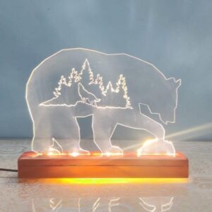 Intra απο ξύλο plywood 3mm-4mm πάχος - Bear Ακρυλικό Φωτιστικό γραφείου Δίασταση 20x20 cm Intraeaxys-pok32zd7