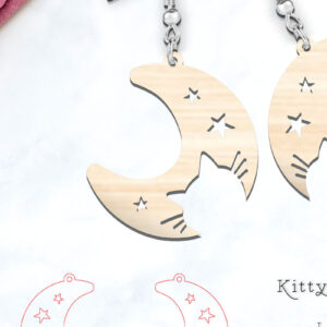 Intra απο ξύλο plywood 3mm-4mm πάχος - Cute Moon Cat Earrings | Laser Cut Δίασταση 900x900 cm INTRAFABR-118350831
