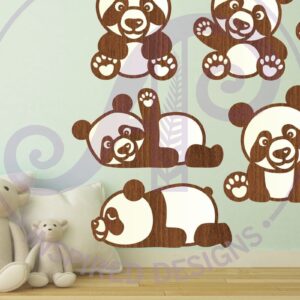 Intra απο ξύλο plywood 3mm-4mm πάχος - Cute Pandas Laser Cut σχήματα αρχείων. 8 Δίασταση 30x20 cm INTRAFABR-80647837