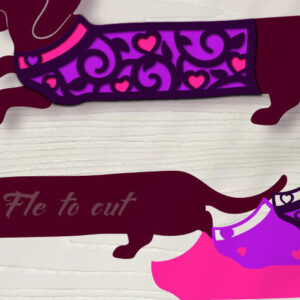 Intra απο ξύλο plywood 3mm-4mm πάχος - Dachshund σε 3D ρούχα με καρδιές. Δίασταση 20x20 cm INTRAFABR-24951707