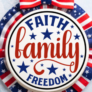 Intra απο ξύλο plywood 3mm-4mm πάχος - Faith Family Freedom USA στρογγυλή πινακίδα πόρτας Δίασταση 40x50 cm INTRAFABR-123523877
