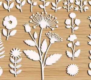 Intra απο ξύλο plywood 3mm-4mm πάχος - Floral Silhouette Mega Bundle 1630 Δίασταση 20x20 cm INTRAFABR-122698705