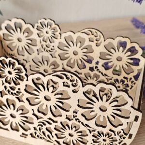 Intra απο ξύλο plywood 3mm-4mm πάχος - Καλάθι δώρων με λουλούδια , Καλάθι κοπής με λέιζερ Δίασταση 15x15 cm INTRAFABR-117012527