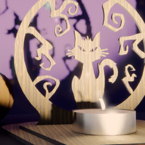 Intra απο ξύλο plywood 3mm-4mm πάχος - Κηροπήγιο Halloween Black Cat Δίασταση 15x15 cm INTRAFABR-79116744